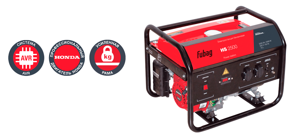 Наклонный металлический козырек над приборной панелью обеспечивает дополнительную защиту элементов панели от неблагоприятных погодных условий.Бензиновый генератор FUBAG HS 2500 в продаже по цене 0 руб. в Интернет-магазине Проф-инструмент с доставкой в Красноярске и Красноярском крае. Звоните по телефону +8 (800) 302-10-51.