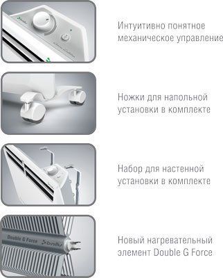 Мощность: 1000 / 500 Вт. Площадь обогрева: 5 - 15 кв.м. Установка: напольно-настенная. Электронный термостат. LED дисплей. ПДУ. Таймер 24 часа.