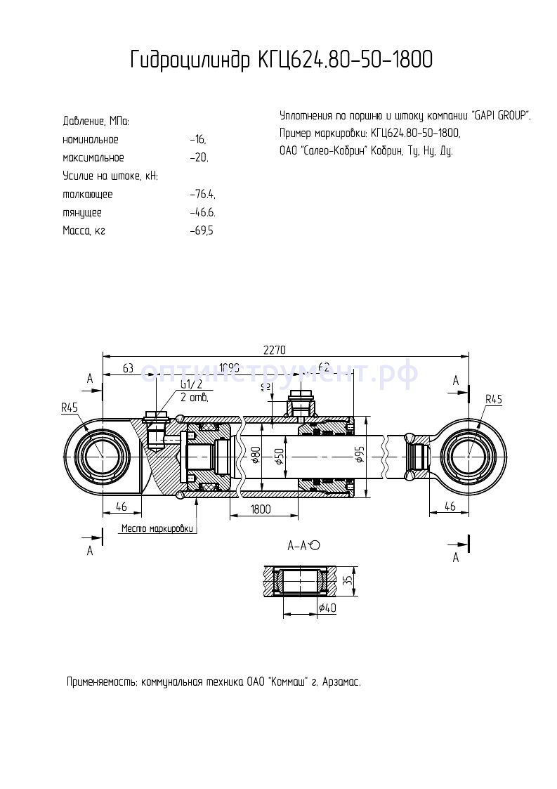 Гидроцилиндр КГЦ 624.80-50-1800 в продаже по цене 41 625 руб. в Интернет-магазине Проф-инструмент с доставкой в Красноярске и Красноярском крае. Звоните по телефону +8 (800) 302-10-51.