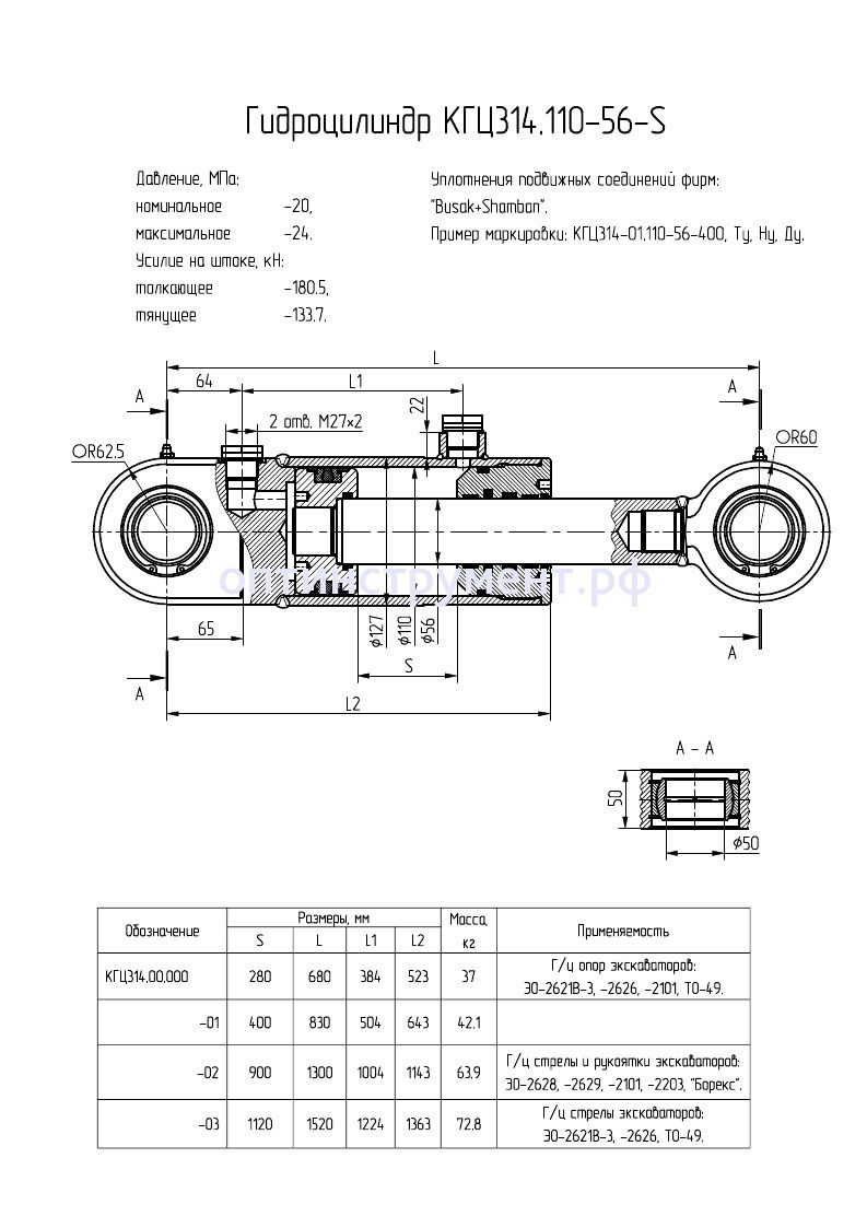 Гидроцилиндр подъема стрелы, рукоятки опор экскаваторов КГЦ 314-01.110-56-400 в продаже по цене 21 750 руб. в Интернет-магазине Проф-инструмент с доставкой в Красноярске и Красноярском крае. Звоните по телефону +8 (800) 302-10-51.