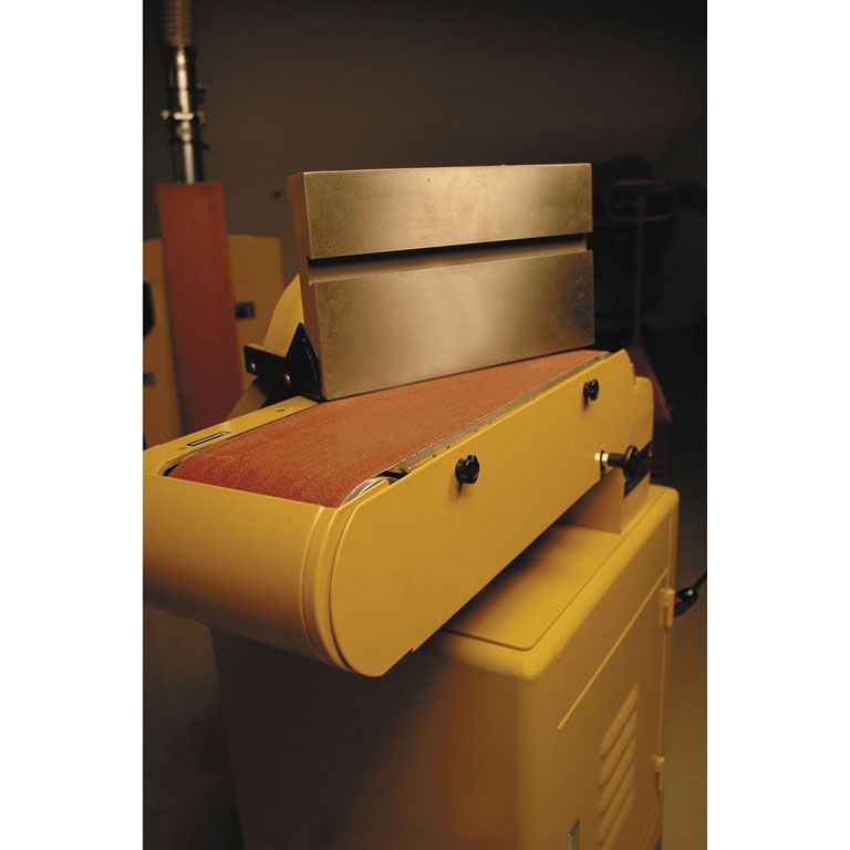 Деревообрабатывающие станки Powermatic, наиболее популярные в США, характеризуются как лучшие в классе, благодаря чему признаны «золотым стандартом». Модель 31А полностью соответствует марке: это мощный станок, сделанный прочно и основательно. Компоновка – напольная, в тумбе-подставке размещен мощный двигатель и 100-миллиметровый патрубок пылеотсоса. Верхняя часть корпуса станка чугунная, из этого же материала сделаны и оба рабочих стола. Каждый из них регулируется по углу наклона, причем стол тарельчатого узла поворачивается не только на 45° вниз, но и на 15° вверх, а стол ленточного можно установить продольно. Для точных работ предназначен угловой упор с направляющей вдоль Т-образного паза, который предусмотрен у обоих столов. Ленточный узел можно установить вертикально, горизонтально или в любом промежуточном положении. Запас мощности и массивная конструкция с большой жёсткостью обеспечивают точность и отсутствие вибраций, даже при выполнении тяжёлых работ.