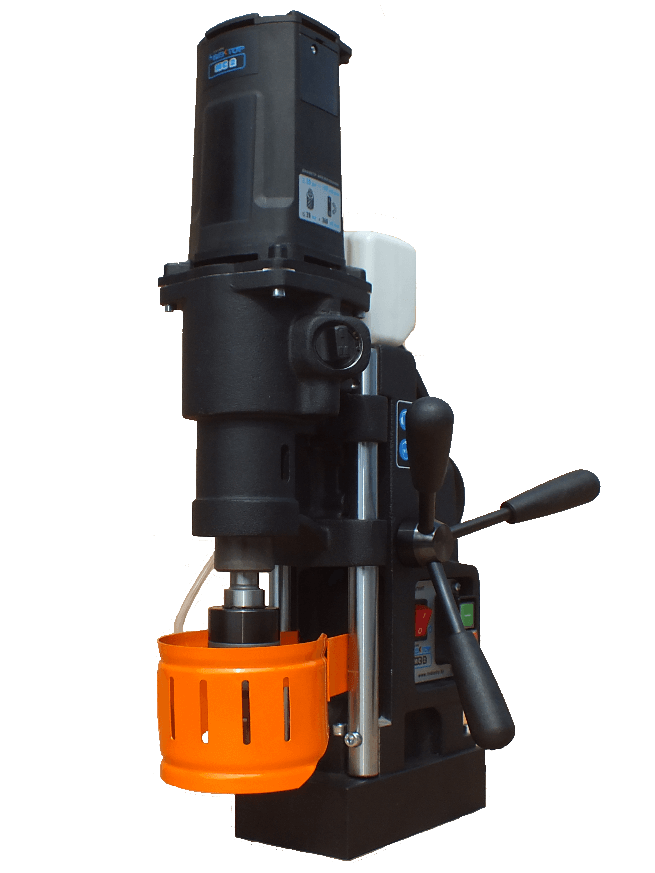 Компактный бачок для СОЖ (смазочно-охлаждающая жидкость). Интегрирована система автоматической подачи жидкости под высоким давлением, чем обеспечивается высокая надежность и безопасность. Данная система уже идет в стандартной комплектации. Усовершенствованные новаторские конструктивные решения при конструкции корпуса сверлильной машины. Даже в самых суровых условиях эксплуатации магнитная сверлильная машина будет работать как новая. Все благодаря защищенному корпусу, который скрывает все внутренние механизмы и детали от малейших повреждений.