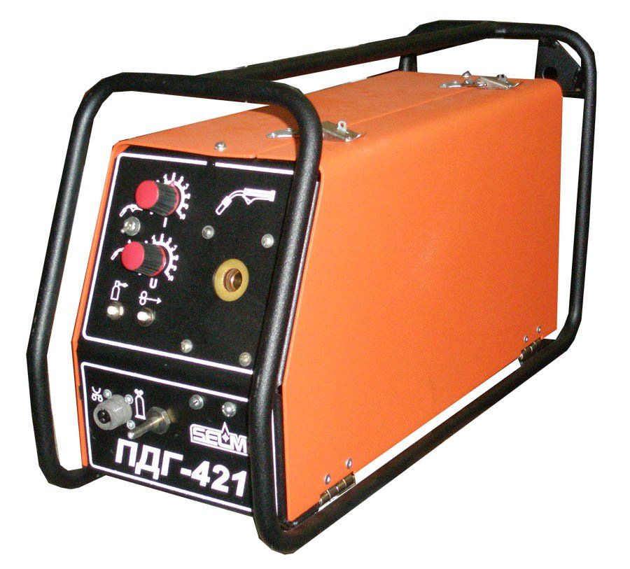 Полуавтомат предназначен для полуавтоматической сварки на постоянном токе плавящейся электродной проволокой в среде защитных газов в комплекте с источниками для МИГ/МАГ сварки. ПДГ-421 (c 4 роликовым подающим механизмом) обеспечивает стабильную подачи проволоки качественную сварку на расстоянии до 30 метров от источника при любом расположении сварочных кабелей.