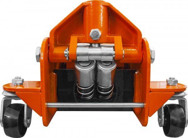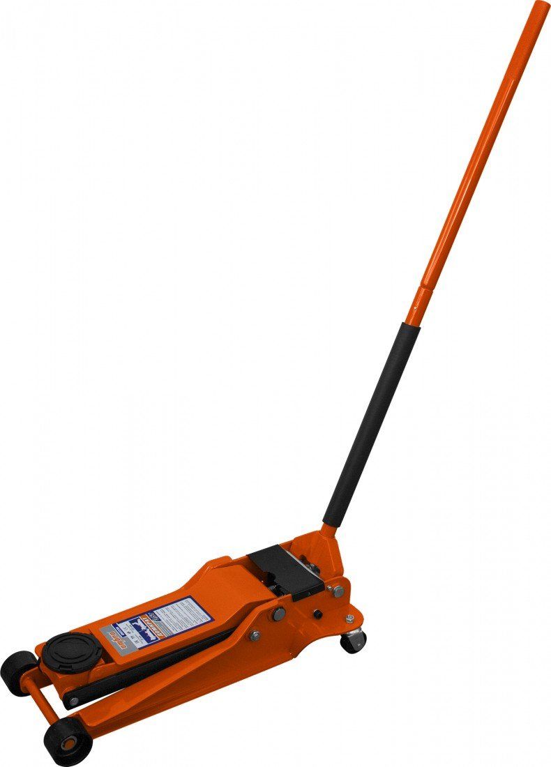 Двухпоршневой подкатной домкрат с уменьшенной высотой подхвата. Предназначен для легковых автомобилей и профессионального использования в условиях частных гаражей, автосервисов или шиномонтажных мастерских.