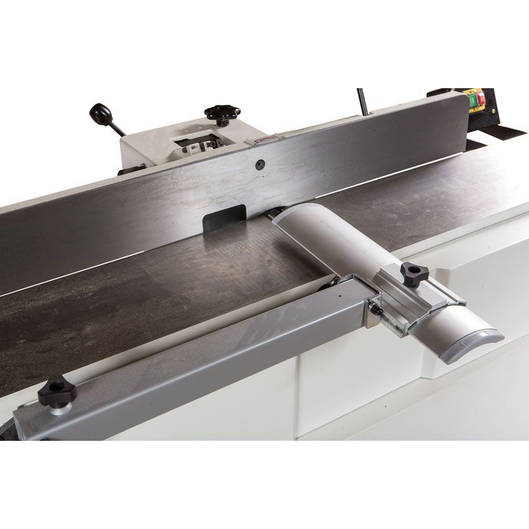 Станок укомплектован массивным чугунным фуговальным упором с регулировочным механизмом червячного типа. Он обеспечивает точную и жесткую установку угла наклона в диапазоне от прямого положения до 45° влево или вправо.