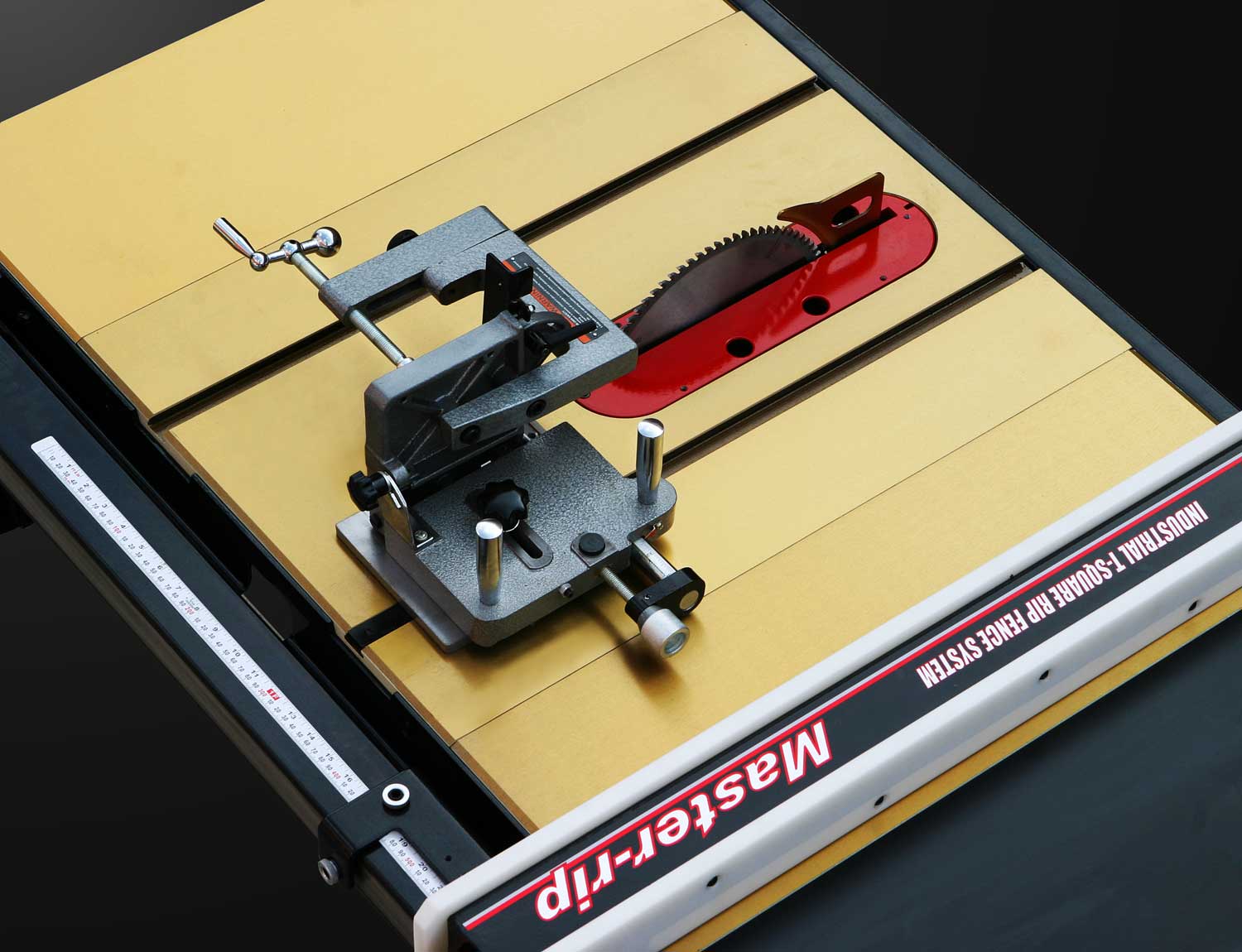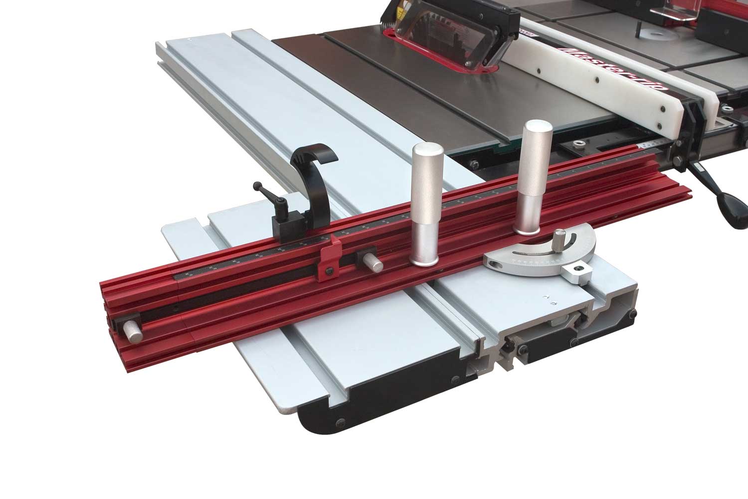 Штатная комплектация включает в себя два чугунных расширителя и параллельный упор с фторопластовыми накладками и эксцентриковой фиксацией на 50-дюймовых направляющих. Все ответственные детали выполнены из массивных чугунных отливок, регулировки высоты и наклона диска производят крупными маховиками, предусмотрена возможность точной юстировки его крайних положений. Такое оснащение, характерное для более дорогих моделей, само по себе делает JTS-250CSX выгодным приобретением. Но есть и другие преимущества: к примеру, конструкция пильного модуля позволяет устанавливать дисковую пазовую фрезу Dado (поставляется за отдельную плату). Для расширения возможностей при работе с этим комплектом доступно в качестве опции шипорезное приспособление. Это зажим для заготовок с возможностью перемещения вдоль Т-образного паза.